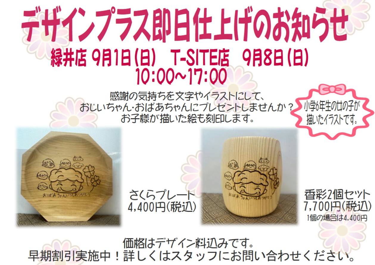 デザインプラス即日仕上げのお知らせ